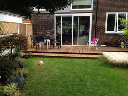 Changes : Porcelain paving, new plants, new turf, tailored bench unit, plant pot, custom made kitchen and shed